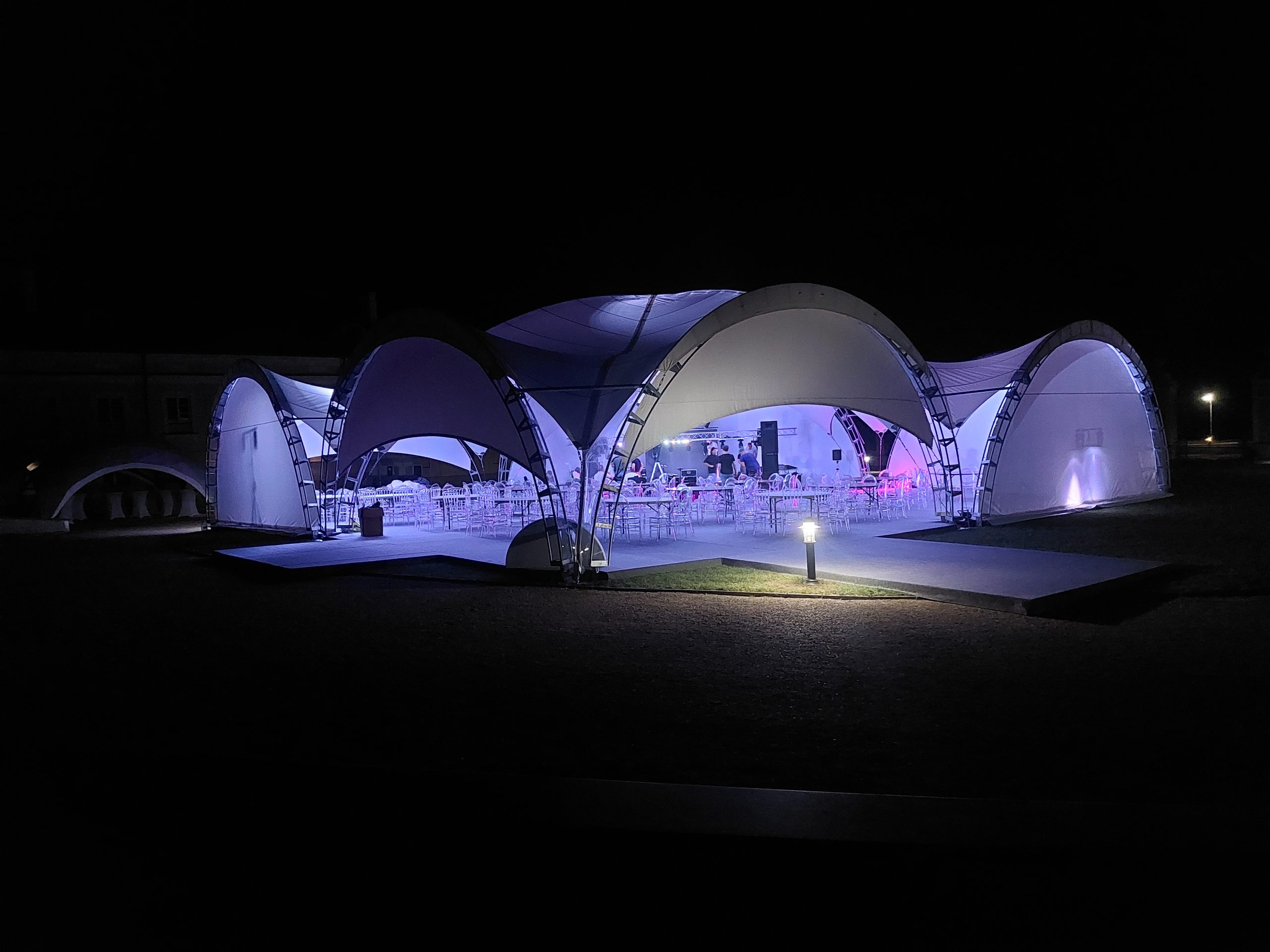 Конструкция TF arka kvadrat 20×20 имеет площадь 400 м2. Вместимость до 200 человек (банкетной рассадки).